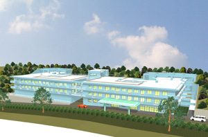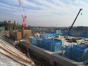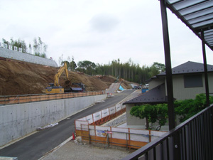 傾斜地のため斜面を削り、建物地盤面を作ります。